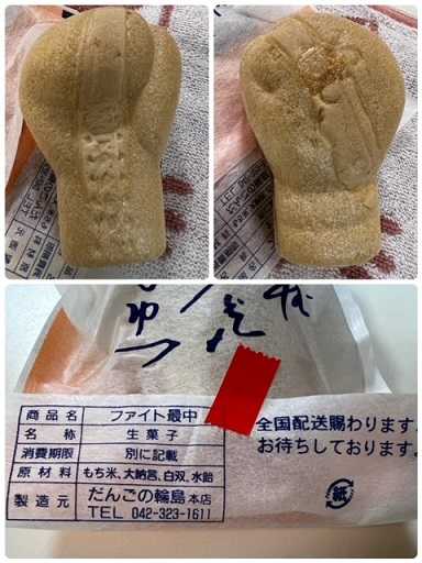 中身はボクシンググローブの形をした最中。