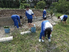 今日で新座中学の体験学習も2日目。でやっぱり草むしりさせてます(`▽´)がんばれ~(笑