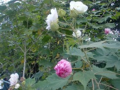 牧場に咲いている「芙蓉花」なんと赤・白と2色の花を咲かせました^^これを見たお客さんが「普通は1色なのに、とても珍しい」とおっしゃってました。紅白なんてなんだかとっても縁起がいいですね(^_^)