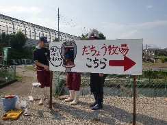 先日の月曜日。志木高校の先生や麻布大学の学生、そして日大の学生がいるので新駐車場内に牧場への案内看板を作ってもらいました☆ダチョウの口から顔を出して記念撮影するアイデアが光っています(^_^)(笑