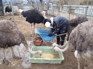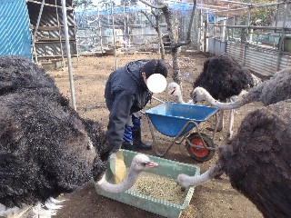 今日も寒かったですね!朝、水道が凍ってて水が出ませんでした。こんなに寒いのに。ずーっと毎朝僕を見ると求愛のポーズをとるAパドックのオスダチョウ。こんなに寒いのになんでコーフンしているんでしょうね?(^_^;)(汗