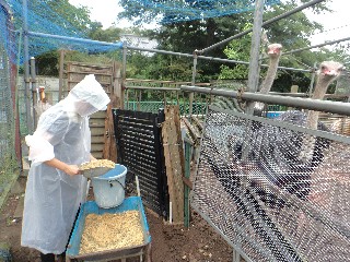 日大3年生Kさんの体験実習3日目。学生さんにはダチョウの生態を教えながら作業してます☆埼玉 新座 バーベキューBBQ予約受け付けこちらをクリック☆