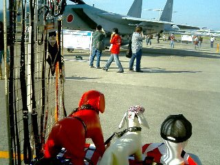10月9日小牧基地の航空祭に出店してきました。当日は晴天に恵まれブースの場所もメイン会場(滑走路)真ん前でした。 F4ですか? とりあえず準備が!ワンちゃんも見てます。最後は飛行機のお片付けです。 (お疲れ様です)