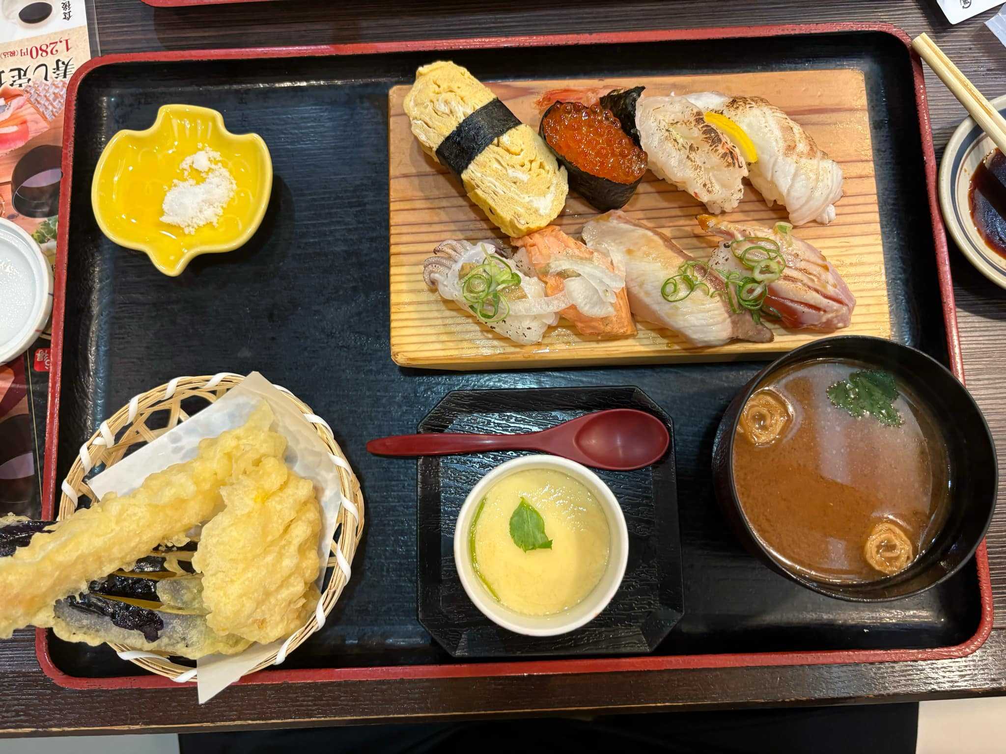土佐ぽん太の代理です。高齢になり、夫婦ともに外食する機会も減っていますが、妻から久しぶりに外食に行こうと誘われ、寿司定食を食べてきました。炙り寿司の定食で、茶わん蒸しと天ぷらと味噌汁がついています。和食の王道が勢ぞろいですし、あっさりした和食が好きな私にとっては久しぶりに豪華なごちそうを頂きましたね。ぽん太の世話に追われ外食する機会も減っていましたが、久しぶりに寿司定食を堪能する事ができました。