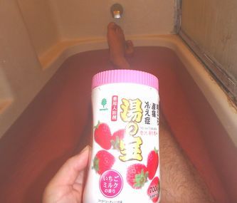 はぁ~昨日のラウンド歩いて回ったのが体にキタ~もうお年頃なのね~ゆっくり温泉気分と思って湯の宝 いちごみるくでもお風呂に入れてみたら血みたいみるくって言う位だから真っ白の期待したのになにこれなんかこわ~い土曜ワイド劇場の死体現場みたい