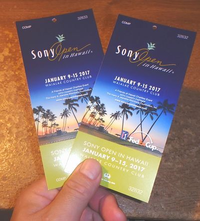 今日タマタマ車ン乗ってラジオつけたらソニーオープンのチケットプレゼント今から言う電話に先着順で4名様~とかアナウンスが流れてきたので女子アナのいいですか~先着順ですよ~皆様~番号は~。。。334.。。と言ってるすぐさま携帯で電話いきなりつながって貴方が1番です~って自分の声が今聞いてるラジオから同時に聞こえてきた~へんなの~いきなり当選!このオアフでやるソニーオープンって年間シリーズの2戦目だからあんまり有名選手こないんだよね~でも今年はザックジョンソンやジョーダンスピアーズなんかもいるらしいからみにいってこよ~っと新年かららっきぃ~!!
