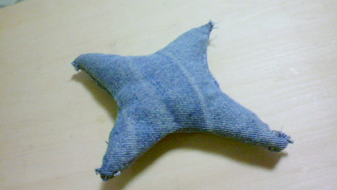 履き古したジーンズを「はぎれ」にして「デニム手裏剣」を作ってみましたおwwwww 【これはまだ試作品なので作りは雑ですお!!】デニム手裏剣を売るターゲットは「お子ちゃま」の居る主婦だおw このデニム手裏剣は人に当たってもケガをしないで遊べる画期的な手裏剣なんだお これに刺繍かアイロンプリントで「忍」とか入れてカックイイくしていこうかと思ってるんだおw1個作るペースは10分位でつ! 2個で1セットで100円スタートで3セット売れれば時給300円なのだおオークションだから1セット500円位で売れる可能性もあるんだお 1~2ヶ月前の俺っちは「アイディアの商品化」する方法が難しくてめんどくさいものだと思ってたんだお 楽オクとの出会いが俺様ちゃんを「億万長者へ」と導いてくれる・・・・・・・・・・なんとやらなんだおw(いい言葉が思いつかなくて)w