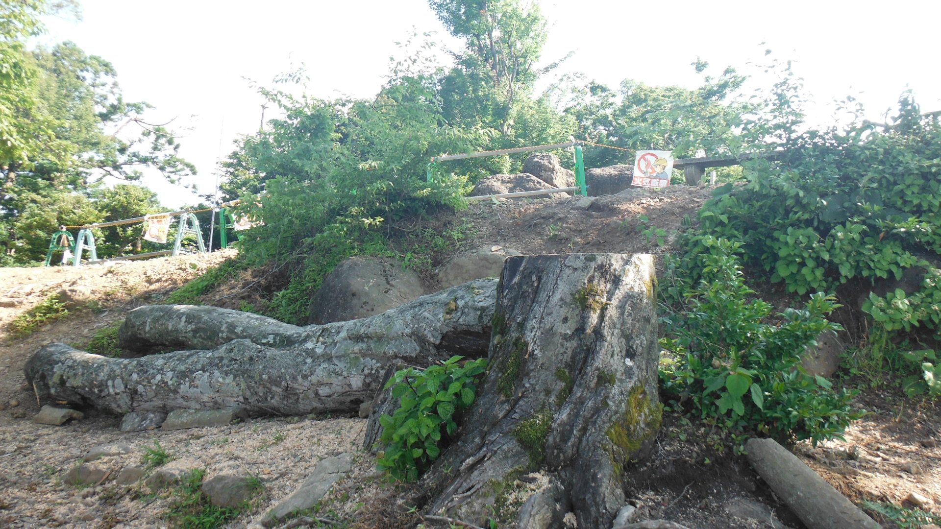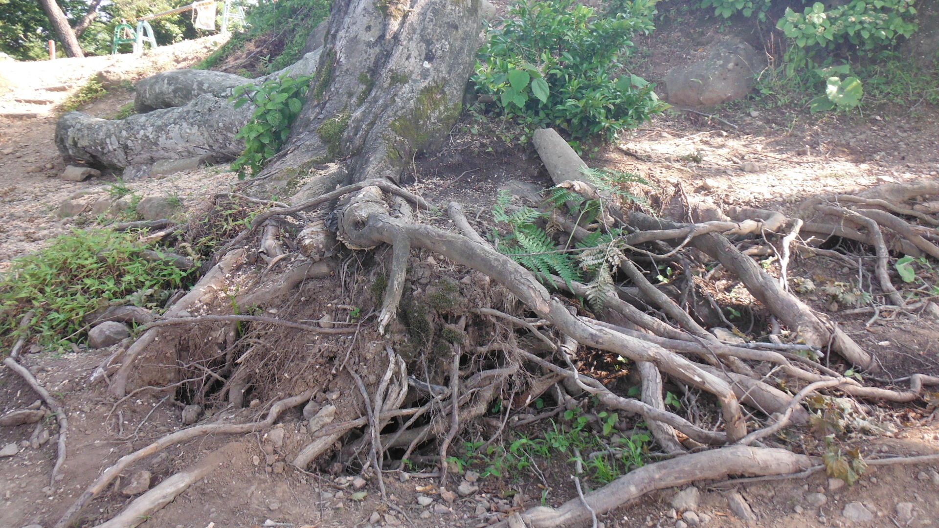 下の画像が危険木の撤去後の切り株と幹の部分枝先は斜面に棄てて有った。