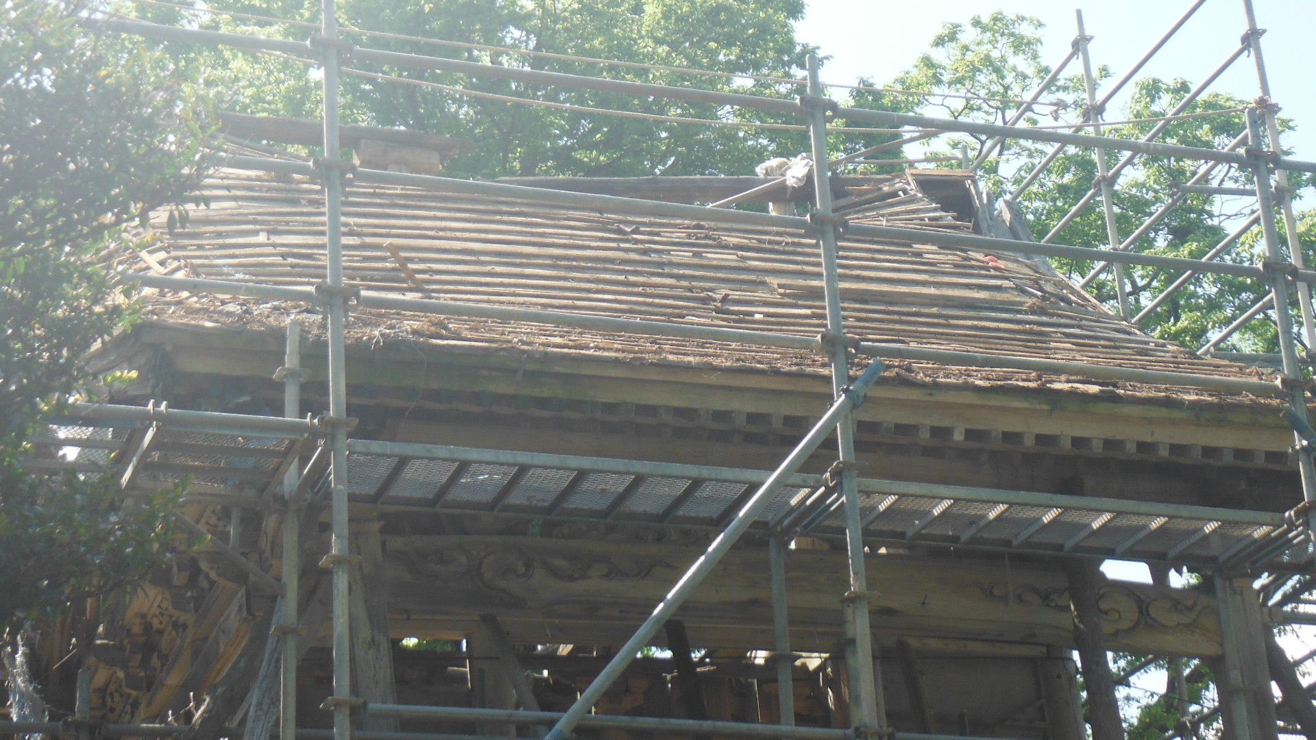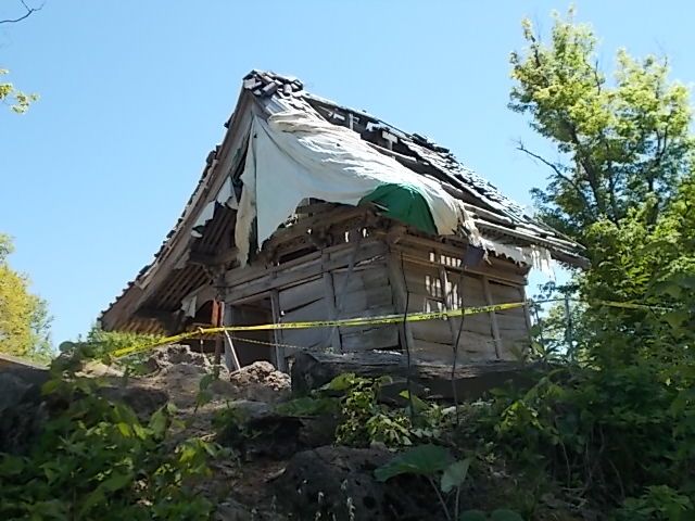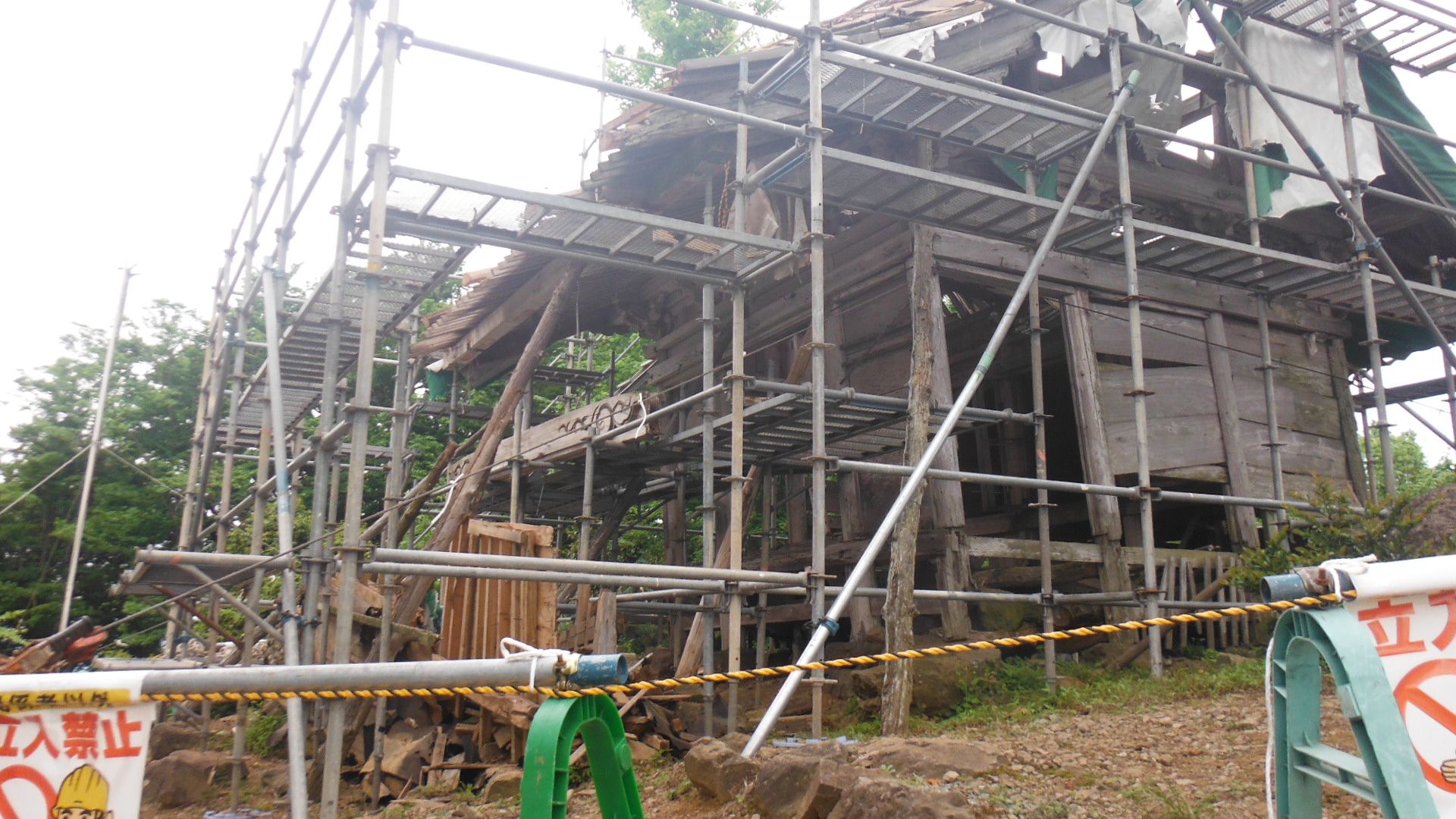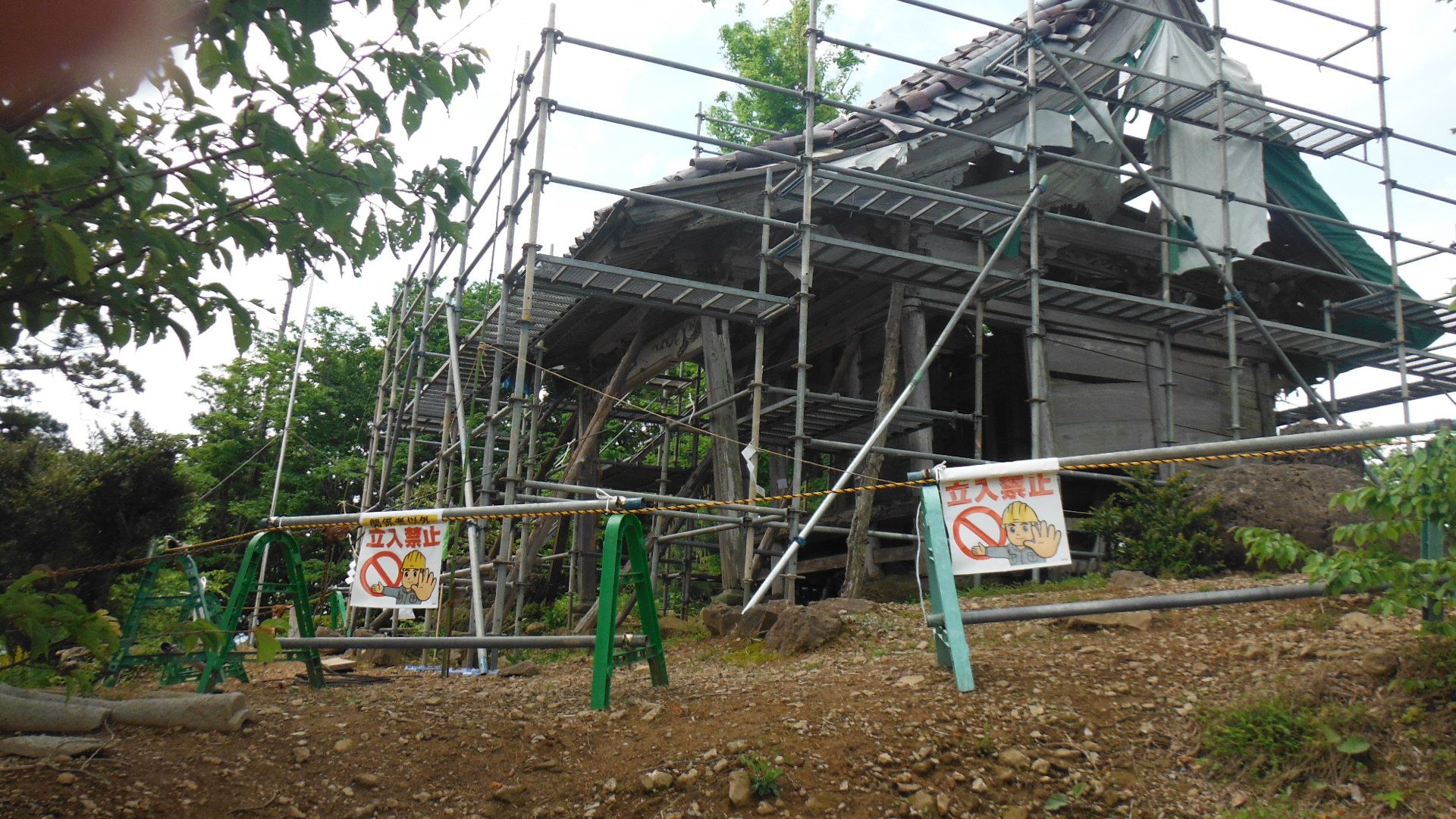 上の画像が3年前の台風で壊れかけていた、文殊山頂上にある本堂です。木の迄に足場が組まれていました。遂に本日は9時より総領の読経で(お祓いの代わり、は何て言うの)解体作業に入るようにです。今から登山して見学してきます。暑い日に成りますので、気を付けて行って来ます。又画像でお示しします。いよいよ動き出した感じです。10万円貰ったら一部を寄付したいと思っています。先ずはここまで・・・・・。