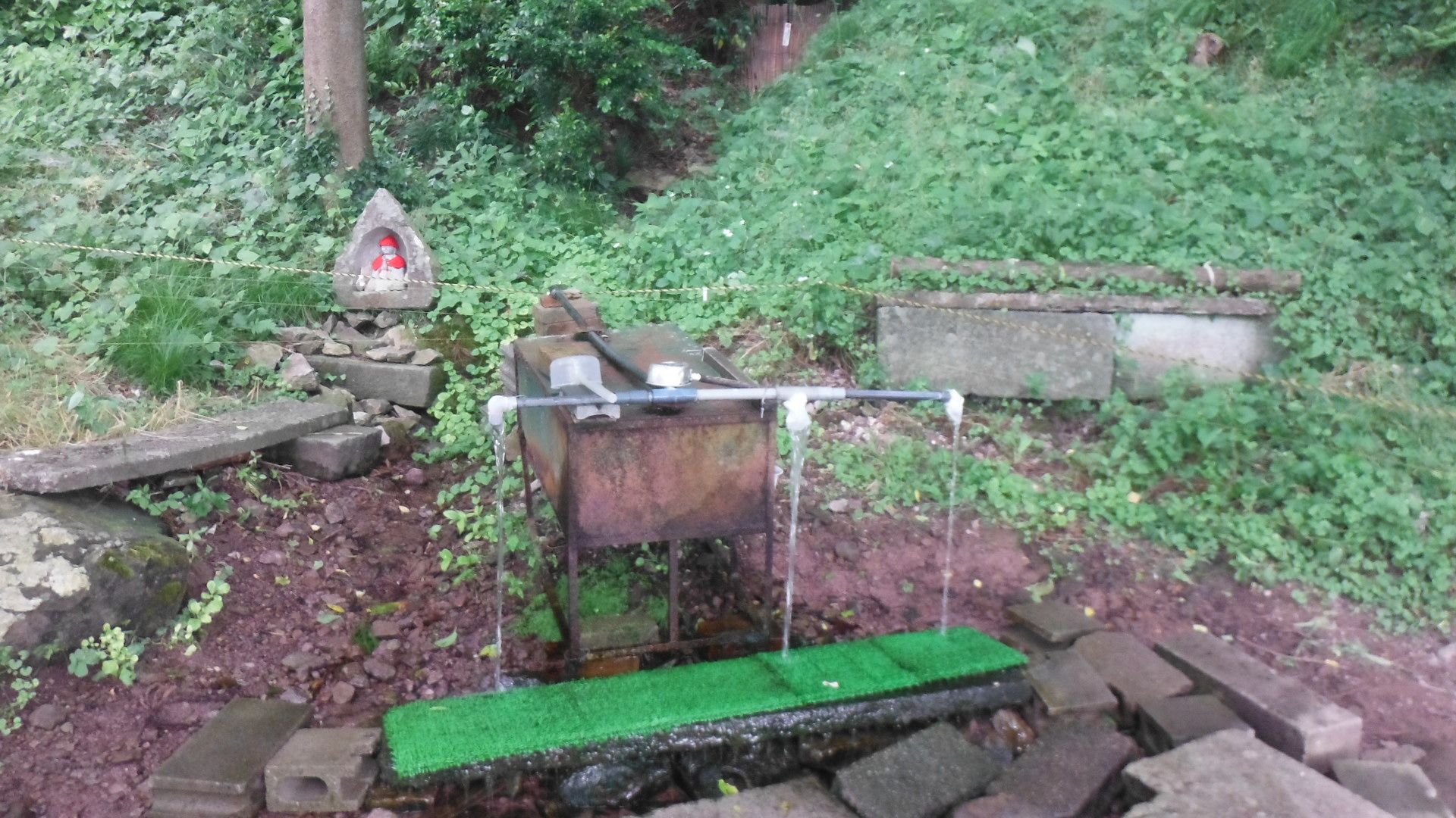 訪問コメント有難う。気まぐれなブログを綴ります。画像は文殊山から噴き出る伏流水です。看板の説明によると、この水で酒を造っていた人がいるとか?叶わく量が多い様で今は市民の生活用水として利用されています。名前が「酒清水」多くの人が列を作って取水するので蛇口が3カ所に増えています。上部に地蔵さんが(付き物でしょうか、誰が設置するのか?)安置されています。中央上部が吹き出し口(水源)です。デコちゃんこの山(文殊山)の北陸線福井トンネル南出口付近からの登山口を探して探検中です。この付近の山は文殊山とに続く橋立山と言う名前が付いている。この山の頂にはNHKの中継設備が設けられています。(景観の関係で文殊山を避けた様子)頂きから東に下る道らしきものが有るので何処に降りられるか探検したいと挑戦中です。昨日は最南部の新幹線トンネル出口より近い谷から営林省の測量後(赤い杭が有る)を辿って登って見たがまた道に成って居ないので途中で道が解らなくなり止む無く引き返した。上手く行けばデコちゃんが新登山道を整備したことに成るのだが、雑木林だから危険を伴うことになる。無理をせず頂上から下る道を辿り登山口を見つける予定で昨日は引き返した。女房の体調が悪い時期にデコちゃん迄が事故に遭ったら大変だ。82歳でする事でないと笑われるかも知れないが「ためしてガッテン」。挑戦して記録に残したい気持ちが強い。山歩きは勇気ある撤退が重要と言われるが、スリルとサスペンスにも興味がある。都市から近い、田舎ならでの面白い山です。地図にある登山道からは毎日大勢の登山者がコロナを避けて登って居る様だ。登山者が増えると当然道が荒れて、(雨が降るとぬかるむ)歩き難くなる。デコちゃん公表の道は体験しているから、新道の開発に興味を持ってきた。年寄りは元気が良い・・・・・医療費の節約にも繋がる。鋸や目印に使うテープを持参して今日も行ってみよう。