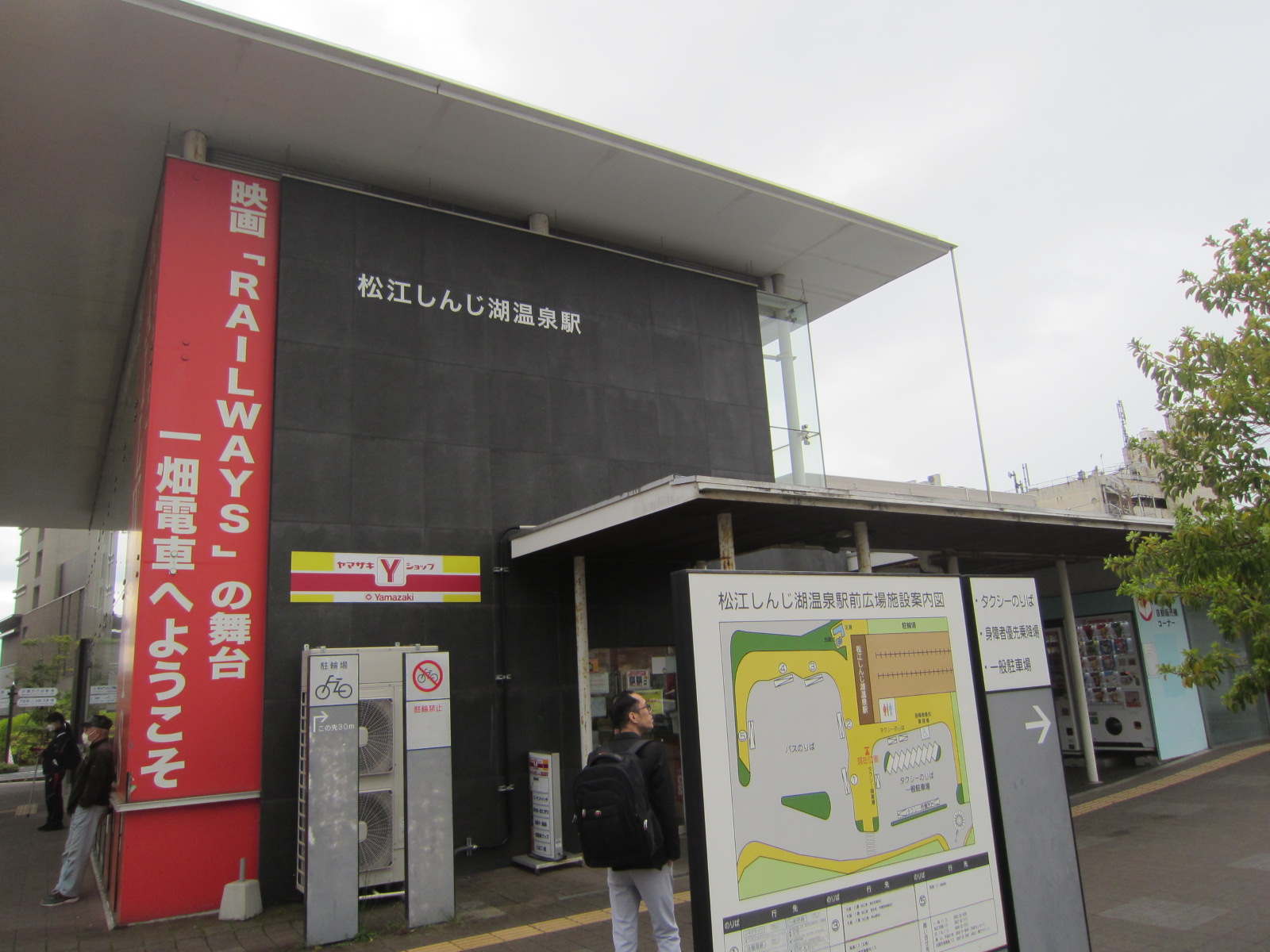 続きです朝、目が覚めると雨でした天気予報のとおりです雨のち晴れってことだったので・・・・ホテルを出て、一畑電鉄の駅へ行こうとこちらの私鉄です宍道湖の北岸を走り出雲大社へ 概ね20キロ弱だったかなへぇ、松江しんじ湖温泉駅だったのだぁ温泉なんてあったかな?実は映画を見て此処へと・・・・・もう、15年以上前の話(笑普通なら、松江城とか出雲大社が目的ですよねぇそれが、映画の影響で一畑電鉄?舞台になったところですちゃんと、映画の題名まで(笑以前は車を此処に駐車して、一畑電車に乗って、宍道湖を眺めたなぁ一畑の電車は宍道湖の北側こんな雰囲気だったかなぁ?次は松江の駅へ松江城からこの駅までに東西に橋が4本かかっています西に宍道湖、南北に道が4本何れかの橋を渡らないと駅には行けないほう、駅の中にスタバかぁ(笑高架の下にはお店が!鳥取駅とはまた違うなぁ・・・・駅も見たので、本来目的の道の駅へJRの駅から本来目的の道の駅へ宍道湖を左に眺めながら、今度は西方面へ向こうに見えるのは宍道湖の北岸です宍道湖の南岸はJRが走っています道の駅、湯の川、きすき、おろちの里、奥出雲おろちループの4ヶ所まわるのが最終行程です湯の川温泉でもあるのかなぁ?いや、そうでも無いみたいさくらの里 きすきどこに桜?時期が悪かったかなぁ(笑運転していて、このあたりは桜やなぁと・・・・此処で昼飯でもと思ったが、まだ、早かったみたいで・・・ひたすら、中国山地へと登って行きます此処を越すと、なんか道の両端に赤白の棒が増えてきたスノーポールって言うらしい多分、冬場になると、チェーンが必要なのだろうと・・・おろちの里ほんと、山の中です!この道がループの道やろなぁ道がくるくるとループ状になっている運転しているときはあまり気にならなかったけど・・・道の駅 おろちループ此処を過ぎると、もう帰るだけとなります山を降りてきたところですオマケに続きます