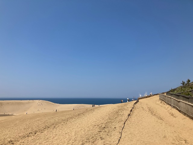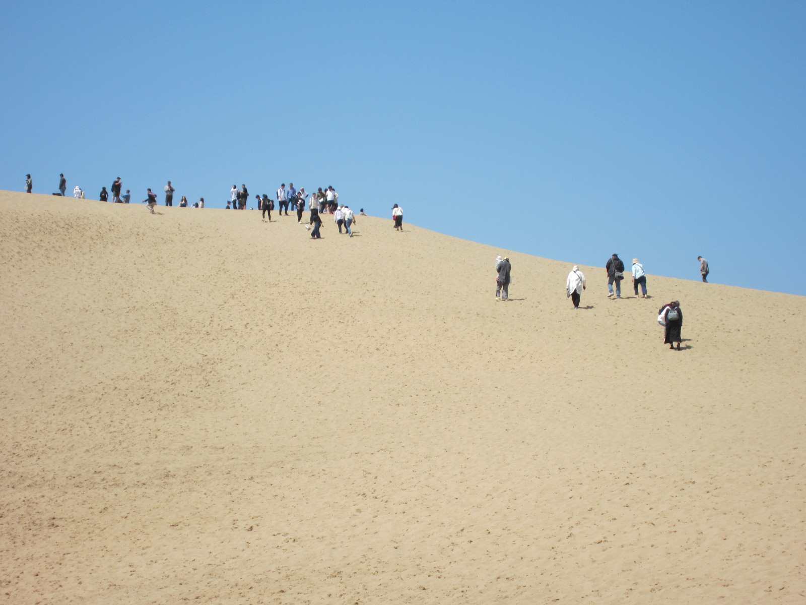道が混む前に何処かへ行こうと!閃いたのが、日本海そうじゃ、鳥取砂丘へ!それから道の駅切符と鳥取、隣が島根、それから兵庫県の余部鉄橋をと!余部鉄橋は砂丘から近いし、道の駅切符もあるこれで決定したわけなのですメインは兵庫の余部鉄橋だったかも(笑朝の6時過ぎにこちらを出ると、昼前には鳥取砂丘へ中国自動車道って、相変わらず、空いているのだなぁと・・・鳥取自動車道はトンネルだらけ砂丘についたが、駐車場はかなり満車?車を置いて、いざ、砂場へ(笑向こうに日本海が見える!腰痛がやっと治ったのに!砂場を歩くのは辛い(笑足が砂に取られて歩くのも大変砂漠のオアシス!向こうの馬の背に登ろうと・・・この馬の背20mはあるのでは?ヒィ、ヒィ言いながら馬の背にそこからの写真なかなか綺麗なのでは!これは多分、東方面結構、風もあって、波が・・・・西の方はこんな感じでした馬の背を超えて、海岸に降りる馬力はありませんでした結構、この砂丘で体力を消耗(笑この砂丘は夏場には来る場所ではないですなぁ体力の無い高齢者には辛いです!放送で、水分取って無理をしないようにと・・・・少し、水分を取って、から余部へ!あの余部鉄橋の事故、昭和の事件ですがねぇ知ってる人は何人ぐらいいるのだろ?とりあえず、次はそこです!