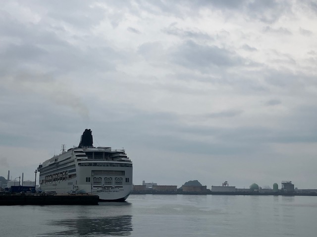 このところ、1日に8000歩~10000歩ぐらい歩いておりますまぁ、夕方なので、まだ日も高い歩いていると、見つけたのです奴がまた来ていました(笑デカい海の動くマンション!そうです、クルーズ船が・・・・じゃぁ、歩きながら、南側、北側、近くで撮影してみようと北側から撮影天気が今一つですが・・・・・海上海上保安庁のボート?その日は何故か海上保安庁のボートが訓練をしていました映ってはいませんが、こちらには海上保安庁の船が・・・・南側から左側に不審なボートが!海上保安庁のボートが・・・・湾内を何回もいったりきたりしておりますちょっと、近づいてみるかとタクシーとかバスが何回も行き来しています警備の人がいますノルウェージャン・スピリットというクルーズ船みたいですネットで予定を見ていると、5月の連休ぐらいにも寄港していたみたいですだから、乗船客は松山は2回目ってことになる金網で覆われて、一般の人は立ち入り禁止ですタクシーで何人かで乗り合い出かけているのかな?歩いていると、何台もタクシーを見かけました何人かは港近辺を歩いていましたねぇまぁ、2回目なら、道後まで行かなくても町を散策ですか?コンビニ、そうそう、長浜ラーメンのお店もあるから突如ってことも(笑また、クルーズ船が来ることがありそうですから、散歩がてら撮影しましょうかねあたしゃ、貧乏人なので、指をくわえて見てるだけ(笑