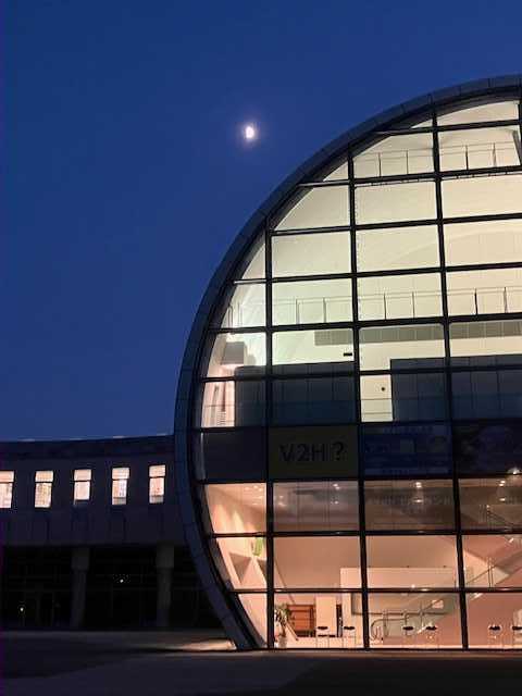 空の色と丸い建物の中の明るさ