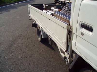今日(23日 月) は大事件勃発チョット、大袈裟ですが愛用のトラックTOYOTAダイナが バースト見てのとうり、後輪ダブルなんで事なきを得ましたが追い越し車線にトレットがぶっ飛んで行くのがサイドミラーで見えました(追い越し車線の青い車の人m(_ _;)m ゴメン!!)何とかまでたどり着き思案中・・・やっと到着の強い見方その名も『JAF』荷台には製品満載(1ton以上)車載工具ではタイヤ交換できません(ーー;)なのにさすが「JAF」さん、難なく交換終了、更に無料ですが、納品間に合わず