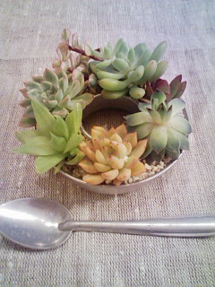 アンティークのドーナツ型のモールドに、かわいい多肉ちゃんたちが並んでいます(^-^)♪