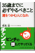 35歳までに必ずやるべきこと 運をつかむ人になれ著者の重茂 達さんは、派遣会社の元社長さんなのだそうです。それも、その派遣会社の日本法人を立ち上げ、トップ企業にした実績の方なのだそうです。わたしは、35歳をちょっと過ぎていますが、あるブログで紹介されているのを見て、「読んでみようかなぁ?」と思ったので、紹介しますね。「35歳」は、たしかに「節目」だと思いますね。特に、派遣でお仕事をしていると、これまでは上へ上へという感じだったのが、(時給や仕事内容など)急に、簡単なお仕事とか、希望の時給だとすごく遠方だったりとか、紹介される仕事に変化が出てきたことを、実感してしまうんですよね。そのうえ、何故か、気持ちは、あまり冒険をしたくなくなるのに、「正社員」や、それを前提とした「紹介予定派遣」よりも、「派遣」にこだわってしまう、という矛盾も抱えています。この本は、「職業人」としての飛躍だけでなく、「社会的に認められる人間」になるために、どうあるべきか?という観点から書かれているそうです。「幸福は絶対の主観である」ということも言われているそうで、そこが、仕事ばかりになってしまうことに抵抗のあるわたしにも、読んでみたいと思わせたところです。▼図解版も出ています。図解35歳までに必ずやるべきこと▼携帯はコチラから。35歳までに必ずやるべきこと 図解35歳までに必ずやるべきこと