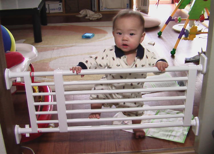 日曜日にホームセンターで「つっぱり棚」を買ってきました。 ただし、使い方はちょっと違います。 居間とキッチンの間に取り付けて、ベビー用の柵にしちゃいました! 今までは、soraがキッチンに入ってくるのを防ぐ為に扉を閉めていましたが、これだと部屋の中でsoraが何をしているのか見えません。 そこで、ずっと柵が欲しかったのですがベビー用の柵は以外と高価で迷っていました。 この「つっぱり棚」なかなかいいよ! 頑丈なのを買ってきたので、なかなか外れなそうだし、いらなくなったら棚として使えるし。 狭い我が家にはもってこい!!! そのうち上りだすかもしれないけど、今の所問題ナシです。