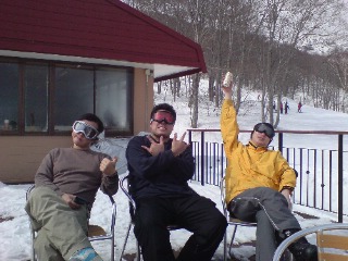 運動するオヤジ馬鹿一デヤンスさてさてまたまた逝ってきましたスノボ今回は大学の連れのEBIちゃんとTKとのオヤジ三人ぶらり旅@赤倉赤倉と言えば、三十路越えしてスノボに目覚めてしまったきっかけでもあるDSガチスキー合宿(笑)でも訪れた事がある懐かしい地でもありますしかし赤倉ゲレンデに異変?が発生していましたなんでもリフトが共通ではなくなり2つ必要になってしまったそうです色々なしがらみがあるのでしょうが、、、客離れになってしまっては元も子もないような気もしますまぁ~それはさておき、朝一からガチで滑りはじめたオヤジ’sは、、、お昼には早々にトーンダウンし酒盛り状態でした(笑)しかし、外で飲むビアはまた格別です一泊二日のゲレンデ三昧の予定だったのですが、、、初日の夜ふとTKが『明日滑んなくてもよくない?』ってぼやくもんで『いいんでねぇ~の』と答えてしまいました(笑)という事で、次の日は観光マップも持ってない行き当たりばったりグルメ観光ツアーになりました(笑)続きはまた今度
