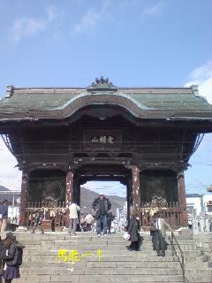 牛に引かれて、馬鹿一さてさて、ボードそっちのけで始まりました逝きあたりばったり観光ツアーですが、、、まったくあてが無いって事で、とりあえず長野に住んでるSちゃん宅を強襲する事にしました高速で行けば速攻なのですが、それじゃあ風情がないので下道でじみちに行く事に!ナビどおりのんびり進んでると、ナビ前方に善光寺の表示が!!!っという事で逝ってきました!国宝善光寺@長野市善光寺は、入口から仁王門、三門をくぐって本堂にお参りする感じになりますまずは、仁王門!と馬鹿一あ 阿吽さんメンチ切れ過ぎデス(笑)そして出ましたぁ~三門!と馬鹿一デ デカイデラックスです本堂は、、、写真に撮るなんて野暮なこたぁ~しません心に焼き付けておきましたやっぱり自分で見に行かないと!しかし善光寺、ただデカイだけじゃぁありません!如何なる宗派もいらっしゃ~い的な超クールなお寺なんです!器もデカイね善光寺!レコメンドスポットは『お戒壇めぐり』いわゆるノックオンザヘブンズドアってヤツですオヤジ’sでも大盛り上がりだったので、カップルで行ったら、盛り上がる事請け合いです!!!ビバ善光寺