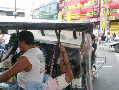 フィリピン名物、トライシクル。いわゆるサイドカーであるが、当時毎年フィリピン経済は悪化していったので、そのうちバイクのトライシクルに比べ、自転車トライシクルも登場。それでも登場当時は、ラジカセ積んで賑やかだったのに、19年ぶりに来たら、まだ、自転車人力トライシクルあった。ラジカセ積んでなかったが、活躍してた。しかし、携帯電話は持ってたりなんかする。