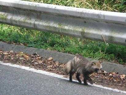 野生の狸。よく見ると、毛が半分なく、骨が浮き出ている。狸は民家に出てくるが、ふんばって山奥で生きる狸、ダンディじゃないか。