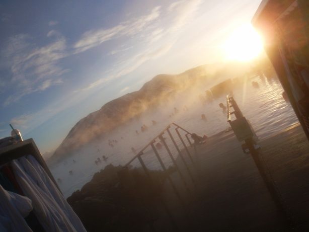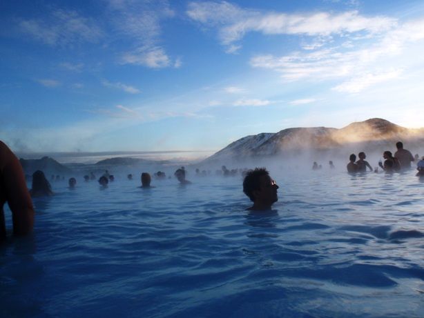 正直言えば、天然温泉ではなく、隣接するスヴァルスエインギ地熱発電所が汲み上げた地下熱水の排水を再利用しただけの施設。しかし、底に溜まる泥は体によいとされているので、すぐさま泥パックもしてみたりするのである。白濁した温泉水には高い皮膚病治癒の効果があるらしい。
