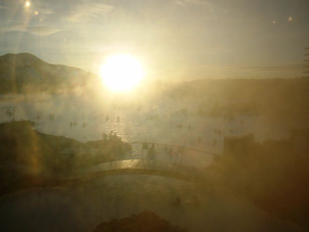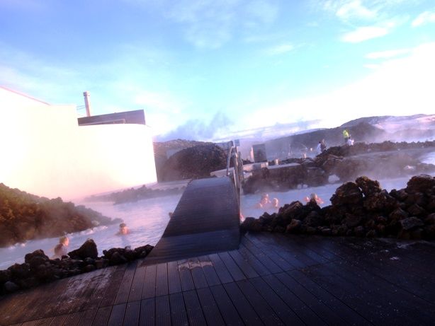 そんな訳で、世界最大の温泉は首都レイキャビック(から40キロ、1時間弱)と空港の間にあり、勿論、周りは黒い溶岩の何もない中に急遽現れるのである。