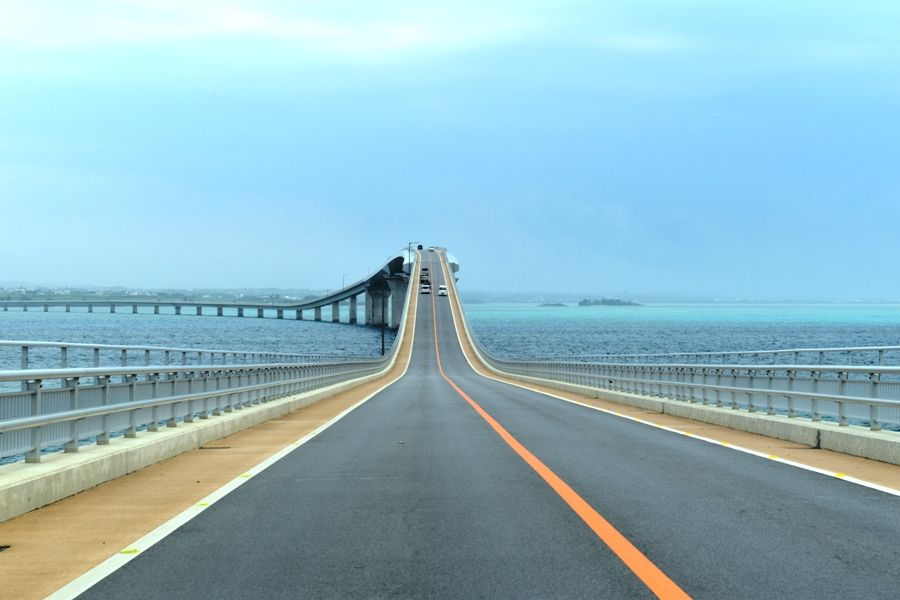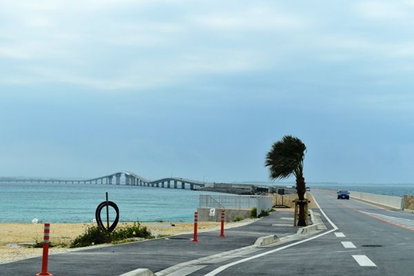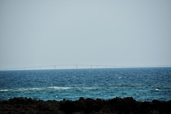 レンタカー屋さんのニイチャンは、「宮古島は初めてですか」と聞いてきたので、「いや、何回か来てるよ、あでも、んー5年ぶりぐらいかなあ (とおもいきや8年ぶりだった) 」というと、失笑して、「じゃあ、伊良部大橋渡ってませんね」と言われた。今からまさにわたろうと画策していた橋であり、心の奥を蒸すかされた気がして、「そうですよね、去年の1末に完成しましたものね」とお茶を濁した。濁す必要もないのにである。
