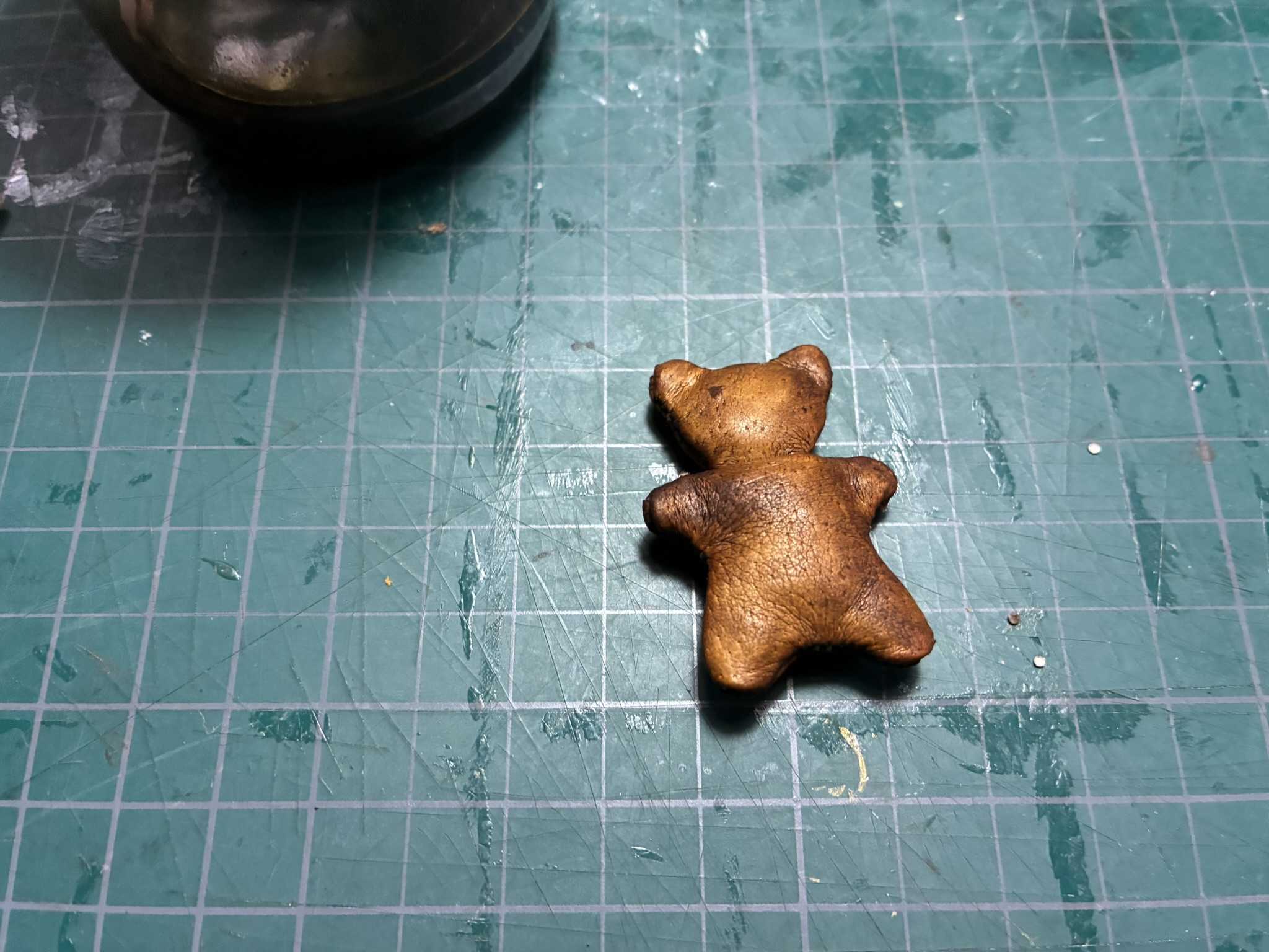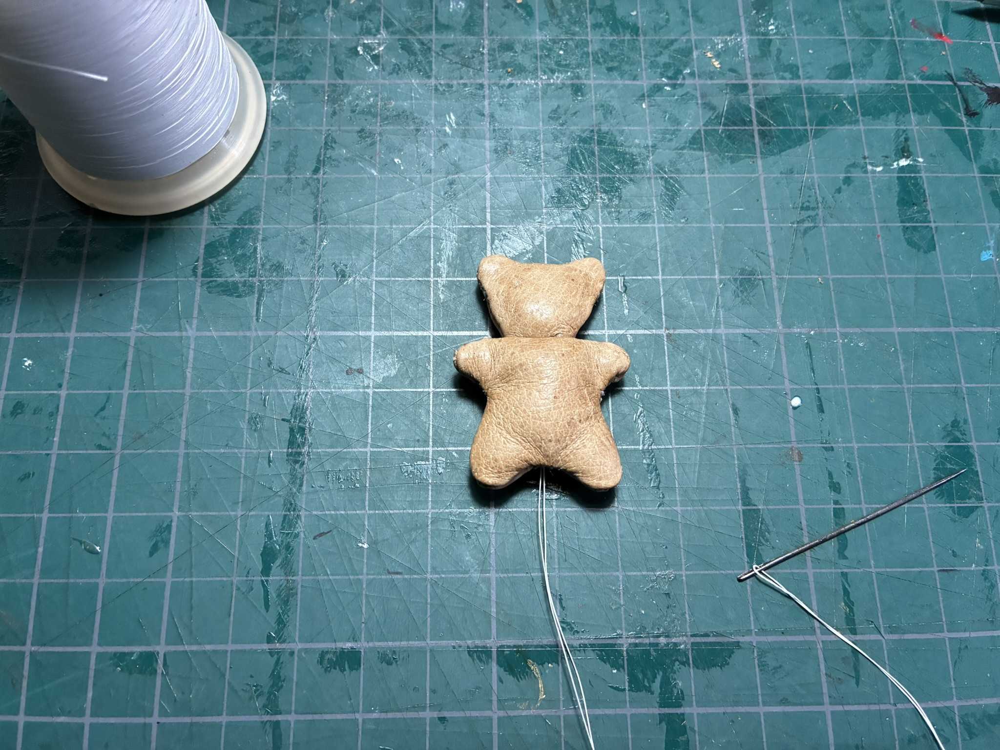 化繊綿を詰めて頭と胴体を糸で繋ぎ、首のところで接着しました。