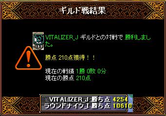 こんばんは!本日のGvは『VITALIZER』 様でした!2PTの集まり!初っ端から死にました!シフさん痛かったです;そして狙えど狙えど、一人に対してWIZさんが二人掛りでアスヒが回っているので全く落とせず;そんなとこからちょくちょく落とされ失点が続きました;霊術さんの腕切りがすごい入って会った瞬間に腕切りで何もできない感じで残念でした><;追えど追えど走って逃げられタゲも合わすことが難しくてきつかったですね@@; 結果です! 『VITALIZER』 の皆様Gv対戦ありがとうございました!