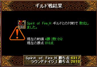 こんばんは!本日のGvは『Spirit of Fire』 様でした!集まりは15名の2PTでした!昨日に続き2日連続のGvでした! しょっぱなから行くものの得点ならず@@;そのあとも押すものの逆に押され霊術さんの腕切りがすごくはいるので戦えなくてモゴモゴすることが多かったです><;妨害さんが活躍されこちらの天使陣はむぅーーーー(´公`)な感じでした結果です! 『Spirit of Fire』 の皆様Gv対戦ありがとうございました!