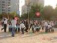 日曜日に幼稚園の運動会があったので家族みんなで参加。2週間くらい前からかな~毎日ダンスを練習しているんだ~って言っていた息子。ちょっと熱っぽいときもあったんだけど「運動会の練習するから幼稚園行く」とまで言っていたからちょっとママはびっくりしたよ^^前のオリニチブのときは区のオリニチブ50箇所くらいが合同でやる運動会で、正直おもしろくなかったんだけど、今回はひとつの幼稚園だけで行う運動会。私もどんな風にやるのかな~って楽しみにしてたんだよね。園児は全部で100人くらい。近くの小学校の校庭を借りてやったんだけど、1家族4人以上はいたから相当の人数だったし思っていたい以上に大掛かりで盛り上がった。 玉入れみたいな普通の競技もあり、もちろん50m走とかもあったよ。オンマだけの競技とかアッパの競技とか、夫婦参加の競技とかもあったな~。さすが韓国人!ってひとりで思ったんだけど、結構みんな積極的に参加するのよね~。 ボートに園児を乗せてアッパがそれを担いで走るって競技もあった。疲れるのはアッパよね~子供はうれしかったみたいだけど・・・。 綱引きもあったんだけど、まだ3歳4歳児の息子達はどうやってやるのかさえ??って感じで先生が必死だったよ^^ がんばって応援する息子達・・・・・。 先生がいなくなるとすぐに砂遊びに夢中^^まだ小さな子供達が必死にダンスをする姿を見て「かわいいな~」と思ったんだけど、相当練習したんだよね~きっと。100人もの園児を先生達はよくまとめるな~って感心しちゃった。幼稚園の運動会は初めてだったんだけど、園児がやる競技を親が見るっていうよりは親も子供も全員参加の運動会って感じだったな~。まとまりもあったし盛り上がった運動会で楽しかったんだけど、親の私もオッパ(旦那)も何年ぶり?何十年ぶり?に必死に走ったので筋肉痛。運動不足です^^。どうでもいいんだけど、幼稚園の体操着ってセンス悪いよね~。どこも同じ感じなのかな~。