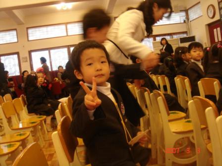先週の金曜日は幼稚園の入園式。ママが一番心配だったのは、新しい服が大~きらいな息子が幼稚園の制服をちゃんと着るかってこと。普通の服はちょっとかわったデザインだとほんとに嫌がる息子。幼稚園の服はまさにそんな感じだわ~って思っていたけど、やっぱり大きくなったのね。ちゃんとわかってるみたい。幼稚園は制服を着て、バスに乗っていくところって。 さすが幼稚園。一人で座っているのもやっとっていう年齢だからって、30分弱で入園式終わり。満3歳から5歳までが入園したことになるんだけど、ひとりも泣いてる子がいなかったのにはびっくり。息子もすっごく緊張した顔だったけど、数分したら隣の子とおしゃべりを始めて先生に怒られてたわ^^心配しているのはママだけで、子供は案外だいじょうぶなのね~って思った。今日もちゃんと早く起きて、自分から制服を着ないとって言ってたし・・・とりあえず安心、安心。 小学校にあがるまでの3年間、幼稚園で楽しい思い出たくさん作ってね~^^