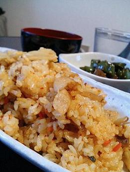 キムチチャーハン ピーこん炒め はい本日はこんな感じですぅ~ピーこん炒めはですねぇこんにゃくをちぎってあく抜きをしましてヘラかなんかでギューギュー押しながら炒めてくさいこんにゃくがキャーキャー騒ぎますマジです イヤぁンはさすがに・・・言わへんかと・・・Mの人はSになった気分でSの人はいつも以上にSで女王様のようにシバいたって・・・じゃなくて、炒めてくだいなホントはゆでじゃが潰す器具でやるみたいんでまぁ後はピーマンぶっこんで砂糖と酒と醤油で味付けてゴマふって完成でっせ結構ウマイぜぃ てか、砂糖・酒・醤油の味付けの料理って多いなぁ今さら気付いたよあたしゃじゃあよぉ、あらかじめ混ぜた合せ調味料作っときゃエェんでねぇのとんかつソースとかマヨネーズ入れるやつみたいなのに・・・砂糖が沈殿すりゃ振って混ぜればエェんやしこれってありなのてかすでにどこの家庭もしとったりして