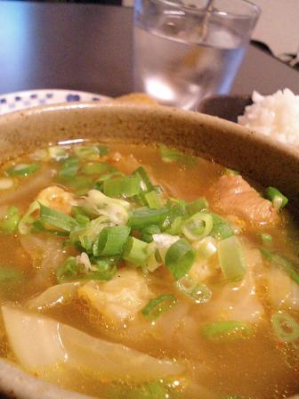 はい!今晩はカレー風味のチキンスープでございますぅ~