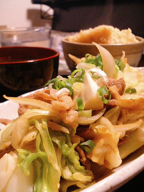 豚とキャベツの炒めもんです~タレが下に落ちてもて見た感じでもホンマにオイスターソース味っぽいんかも分からへんがな ̄Д ̄ちっ