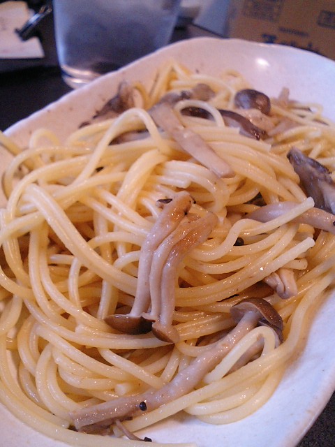 きのこスパゲッティ 昨日作ったキノコソースできのこスパを作ってみやしたなんかバターをちょっと焦がすのがポイントらしいよ あと・・・ ディープ! ̄▽ ̄頑張れ~!
