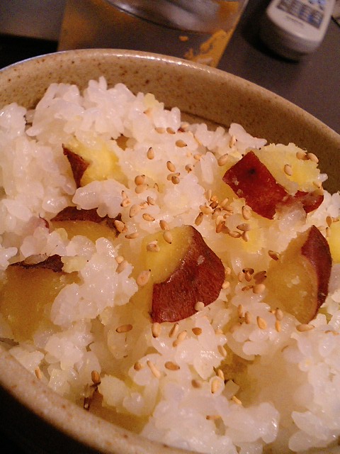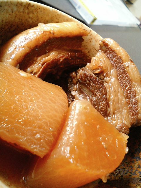 美味いわぁ~さつまいもご飯さつまいもの甘いのとちょうどイイ感じの塩加減マジうめぇ~ んでもって、ハルコさんの豚大根(宮沢りえのCMのやつね)大根が冷蔵庫の中でちとやらかくなってきてヤバそうなもんでやっぱ好きだわこれ味しっかりしとるけどサッパリしとって