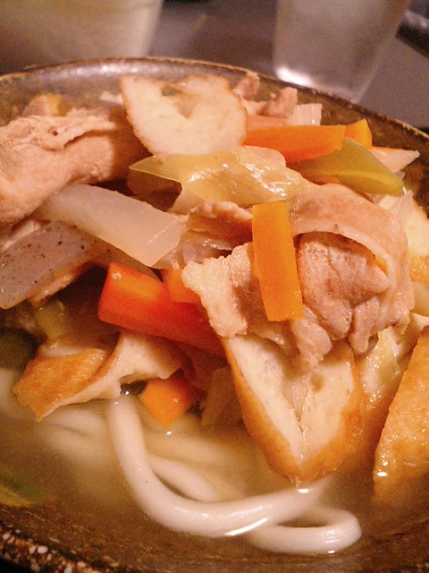 豚汁うどんさつまいものきんぴら 豚汁うどんは一人暮らしして初めてのアイディア料理やねん今やったら真鍋かをりがCMしとるけどぉ あときんぴらはケンタロウ式やから当然美味いでこれはこれで美味しいけどバター使ったからスウィートポテトっぽいかな 作り方 さつまいもは斜め薄切りにしてから細切りににして塩水につけておくフライパンを熱してサラダ油をひきバターを投入し、水けをきったさつまいもを強火で炒めるさつまいもが透き通ったら醤油、みりんを加え混ぜ、ごまも加え混ぜる 話は変わって 今日携帯変えたんやけど・・・変える前の携帯の方がカメラの性能エェねんデジカメ代わりにしとこ~