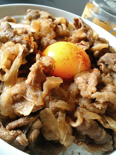 この前吉野家の牛丼食べられへんかったから自分で作ったった~紅生姜忘れたけど・・・ これマジうめぇ◎Д◎!吉野家だぁ~!! 安い切り落とし(かた肉)でこの美味さやったから・・・ 高い牛バラ肉やったらマジ吉野家だで~ ケチケチせんと今度は牛バラ買うぞぉ~ダーっ レシピはココよ~http://cookpad.com/taka_jam/recipe/195791/