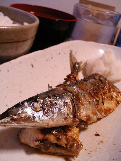 は~いさんまの塩焼きでぇ~っすちょっとボロボロですけどぉ~ 最近フライパンでも魚を上手に焼ける方法を知ったもんで魚を焼きたくて焼きたくて ̄▽ ̄たまらんのですわw この前はサバ焼いたしサンマもクリアしたし今度はシャケにでも挑戦しよぉ~っとぉ んまぁ・・・アホの一つ覚えっちゅうやつですけどね あと大根をおろして、キッチンペーパーで水気を切ったんすよちぃとましとったら何かしれんけど指が火傷したみたいにめちゃヒリヒリしたねん・・・これって大根の汁のせいかいな おぁ痛かったぁ