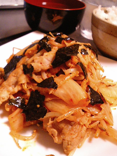 やっぱり困った時にはこれよねぇ ̄▽ ̄ 香織子姉さん直伝「豚キムもやし」これまたご飯がススムのよぉ~ 酒のつまみにでもイケルんちゃうおいらはお酒飲まれへんから分からんけどぉ~ そういやまた今度飲み会や んまぁ結局全吐きで朝まで酸欠カラオケやろな楽しみだぁ~ ̄▽ ̄/