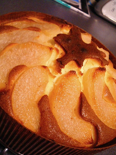 梨ケーキってやつですぅ~パウンドケーキっていうんこうゆうんお菓子の事はようわからんわ レシピhttp://cookpad.com/mykitchen/recipe/217013/ けどなかなか美味しかったであんまり・・・甘くなかったけど・・・ もしかしてこれって・・・生クリームちょっと横に添えてあって、それをつけて食べるってやつテレビで見たことあるけど・・・