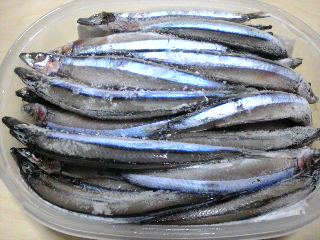 こんばんわ2度目の更新です今度は釣りネタで・・・これはキビナゴです。(わかるわい!ってか?^^;)昨日仕事が終わり、うちの店で、買い物をしていると 新しくて安いキビナゴを売っていました。「買おっ!!」即!買い物かごに・・・ポイ!帰ってから、すぐに塩をまぶして 一晩置いてから、今朝水分を拭き取ってタッパに入れて冷凍しました。人間でもお刺身にできる新鮮なキビナゴです。 さあこれからの季節です。ダーリンがいつ「釣り行くで!!」と言ってもいいようにこうしておくと、身が締まって長持ちします釣具屋さんで買うと、高いし、すぐに身が腹からボロボロになってきます。釣具屋さんでは、もっと少なくて¥300、うちの店で買うと198円でしたさあ準備OK太刀魚さ~ん、いつでも来なさ~~いおしまい では