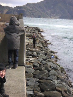こんにちわ久しぶりにで更新です。今日は私だけお休みで、さっきダーリンを送り出して、やっとゆっくりとの前に落ち着いて座れました。 今日は10、11日の息子一家と香住カニカニ旅行の続きです。10日は鳥取で息子がサーフィンを・・・(さむっ!)見送る嫁と孫・・・心配そうに見送ってる、ように見えるけど、どうなんだろ(・・?)1時間半ほどして戻ってきました。その間、ちょい投げを試みたけど、全くアタリなし・・・釣り具は持って行こうか迷いましたが、釣りに夢中になってしまうといけないと思い持って行かなかったのですが、息子の車に、小さい竿があり、カワハギ仕掛け2本入りを2セット、△錘4個がありましたので、途中でもう1本小さい竿とアオイソメ300円だけ買いました。風も結構あり、サーフィンにはですが 釣りにはちょっと・・・その後、ここへ行きました。孫に「あの上から、が落ちて何人も亡くなったんやで」と教えました。4年生のお兄ちゃんは「恐い~~!」と・・・この高さは流石に恐いですこんな所をは よく走っていたなぁ・・・足が震えます 4時ごろに香住の『太助』と言う民宿に着き、お世話になりました。カニの季節は民宿も旅館も宿泊料は同じですね・・・でも民宿の方が好きですお料理は前の日記にアップしていますので省略11日朝は何とカニご飯です。カニのぶつ切りを炊き込んであります。カニのお味噌汁と・・・孫は「もうカニいらん!」と言って白ご飯を戴いていました。(^^;) さぁ帰りは天の橋立まで出て高速で途中でいい所を見つけました。始めの写真の所です。に車庫船庫ですね、海から直接までを上げて直すのですね~何とも変った風景です。のどかな、穏やかな風景でした。・・・で、この海岸をグルッと廻って来ると美しいでしょうこの日は穏やかな日だったので特に美しい・・・いかにも イカがいそうでも海草が邪魔だな・・・向こうで釣っているのが息子、こっちで真剣に釣っているダーリン岩と岩の隙間に仕掛けを落として、穴釣りです。 写真を撮り忘れてしまいましたが、私が最初に5cm位のガシラの赤ちゃん、20cmのアイナメ、15cmアイナメ、8cmガシラを釣り、ダーリンと交代ダーリンもガシラを釣りました・・・が・・・自信過剰な負けず嫌いな息子は全く釣れず、最後まで意地になっていましたが、潮が悪い、俺が下手なんじゃないと 言い訳をしていました・・・(^^;)結局、私と息子意外はに戻り、待つ事分・・・時間しつこく釣りをしていたのは私と息子・・・嫁はトイレを我慢、孫達は飽きてきて、「お腹減った~!」可哀想に・・・親子して、しつこい・・・のめり込む・・・やっぱ似てる・・・(≧m≦)ごめんね~ その後は城崎温泉駅まで行き、食事娘にお土産を買おうと思いまして、これくらいのがいいなぁと 値札を見たら何と7800円大きいなぁと思う物は12000円とかします。無理買えない「お土産まってます」って来たし・・・「そうだ」胴長50cmの赤イカを見つけました。2000円また写真撮るの忘れた(--;)娘一家はイカが好きこれにカニ味噌、サワガニの揚げたのをつけて、送料入れて・・・これでも4200円也これで許せ~ その後は舞鶴若狭道を通り帰りました。 おしまい・・・ 追伸子供達が小さい時から、毎年海に潜りに行ったり、年に1度はカニを食べに行ったりしていましたが、子供達が結婚し、孫が出来、赤ちゃんの間は、何処も行けなく、妹も(高齢)出産で、皆で旅行の機会が無くなっていました。また、恥ずかしい話ですが、息子は もう7・8年前になるかな、浮気をしてを出たんです。中身は子供のままの息子で、自分の遊び(サーフィン)に夢中に帰りたいと思っている面もあるようですが、縛られたくないと考えている様です困ったものです・・・でも、子供は可愛い、運動会などは、いつも一緒に居ます。説教しても「わかってる」・・・私も2回も離婚している為、説得力なし・・・5歳年上の嫁は 最初は「待ってる」と言ってくれてましたが、今はどうなんでしょ・・・「戻りたいって言ったらどうする?」と私が聞くと「あの子からは絶対に言わんやろな」と言います。たまに、「私が離婚したり!」と嫁に言いますが、その気はないような・・・私はほっとくしかないんでしょうね~・・・2人の問題だから・・・だからこそ、この旅行は大事な旅行だったのです。こんな機会があれば いつも行きたいと思っています。少しでも家族が一緒に居られる時間を作らなければ・・・って早く、家族の大事さをわかって欲しいんですが、まだまだ子供です最後はお恥ずかしいお話でした。 でゎ、これにて