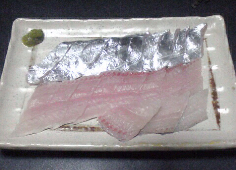 こんばんわ夕べ、また行っちゃいました。このの所へ・・・友達のGさんが釣ってみたいと言うので、一緒に行きました。またキビナゴの電気浮き釣りです。平日だと言うのに波止場は満員、次から次と釣人がやって来るけど 入る場所が無い・・・海面は浮きだらけ・・・しかし 誰もアタリは無い・・・そんな中私の電気浮きが沈んだラインを緩め、しばらく待ってから竿先が持って行かれる瞬間に 大きく合わす周りの注目を浴びて上がってきたのがこの子周りから「おめでとう」「タナは何ヒロで釣ったの」すぐに、また私の浮きが じわ~っと沈んで行った少し焦ったかアワセを入れたがスカッしかし、後は全く無反応・・・・場所移動・・・一昨日のポイントに一昨日はあんなに アタリが頻繁にあったのに 今回は殆どない2時間程で1匹追加、計2匹Gさんも初めてのタチウオ君を1匹釣り上げる事ができましたおめでとう10時過ぎ、Gさんは嬉しそうに帰って行きました さぁ、に帰ってから、の肴を作りました~勿論、タチウオ料理ですまずは、タッチーユッケ次にタッチーしゃぶしゃぶお刺身にして 鍋に入れましたお刺身としてもましたやっぱり1人は寂しいなぁ~でも美味しかったまた飲みすぎたかな 今夜は何を作ろうかなぁ~ ほな、またねっ