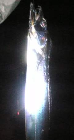 おはようございますタイトルでわかりますねトホホじゃなくアハハでした~ノルマー達成 仕事が終るなり急いで6時半にはに・・・ところがN子「残業やね~ん、遅くなる」ど「じゃぁ1人でいくわ」でもN子も行きたいやろなぁ~と思い直し待ってる事に・・・8時過ぎN子「降ってきたけどどうするぅ~」1人でも絶対に行くつもりのどんぐりさんは ここで止められるはずがないど「合羽着て行くで」 やって来たのは9時・・・こんな時間からやって 釣れるかな・・・明日お休みなんだからいいっかぁ~N子もお休みらしい遅くなってもええね~ 秘密ポイント近くの道路を60cm位のタチウオをぶらさげ歩いて来る人が秘密ポイントに着くと丁度釣り上げてを撮っている先客がこのポイント2人で いっぱいになってしまう狭い場所・・・でもよく釣れるんですわ知ってる人は早いもん勝ちど「無理やなぁ~・・・どうするかな・・・あっちに行くか、こっちで釣るかどうする」N「優柔不断な私に聞かれても・・・どんぐりが決めてくれ」こっちで釣る事に・・・のせいかなそれとも もう釣り禁になっていると思っている人が多いのかな釣り人は少ないキビナゴをつけ、仕掛けを投じていきなり2人同時のアタリ 赤く光った電気浮きがジワーっと海面に入って行く・・・きた~~~ぁまだ、まだ・・・まだまだ・・・・・・・まだまだグイ~ンと沖へ走る今やぁ~アワセを入れてガツンと手ごたえ強い締め込みの後(これがたまらない) リールを巻き出すと観念したのか、素直に手前まで引き寄せられて上げようとしたその時、バシャバシャ・・・スカッフッキングミスっか~N子も同じパターンでバラシ4度目のアタリでやっと1匹目GETそれから3匹連続 GETN子も3匹GETど「Nちゃん対どんぐり、勝負する」N「勝たれへんから~ぁ」 小潮やからかな潮が変化しても アタリは続く隣で釣っていた人は どうも釣れていないような・・・(・・?)静か過ぎる・・・・私達2人は「来た!」「バレタ!」「また来た!」「今や!」「よっしゃ~!乗ったでぇ~!!」「やったぁ~~~!」うるさい女2人組・・・・・途中で諦めたのか、遅くなったからか撤収して行った実はここ、タナが浅いのですよ1ヒロ~1.5ヒロで皆は2.5~3ヒロにする人が多いしかも じっと待っているのではなく、エギングの様に軽く小さくシャクってやるとタッチーも餌さが落ちるのに反応するので誘いをかけたまま 浮きが上がって来ない事がよくある 9:30~1:30までに8匹GET、N子4匹GET2人で12匹アタリはこの倍はありの中、退屈する事もなく 楽しい釣行でした帰ってから、床にタッチー君を並べ、頭と尾、内臓を取って冷蔵庫へ一匹の半分だけ お刺身にして3時なのに、を・・・うめっこんな時1人は寂しいね・・・去年を思い出し少しだけ と、まぁこんな事ですわ あ~~楽しかった!! ほな、またねっ