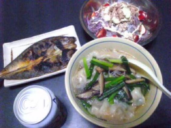 本日2回目の更新です今上のの料理で 飲んでいます。天然ハマチのお刺身用4分の1が何と、480円のところを 6時過ぎに買ったので半額はい、240円でした。(こんないっぱい1人で食べれるんかいな)で、横はの肩ローステキカツ用1枚100円で買いました。ご馳走やけど、安いでしょまず、で、次に熱燗でお刺身てます次は昨日のお酒の肴です。あんまり綺麗に撮れてませんが・・・・・ホッケの開き、紫玉葱のサラダ、スープ餃子です一昨日は何か ピンボケやけどなんで・・・・・(^^;)モヤシとゴーヤの炒め物、牛筋肉とゴボウこんにゃくの煮物 です。 あんまり 美味しそうに写ってませんが、1人で頑張って作ってますは殆ど 炊きませんが が主食なんで・・・・(^^;) もうちょっと 飲んで眠たくなったら ます では、また