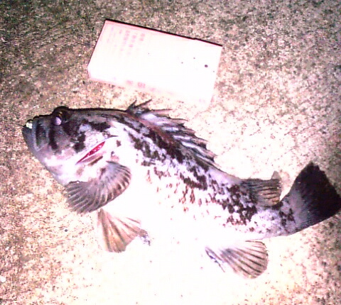 おはようございます 昨日は迷いに迷ったあげく、メバリングにしました。エギングも多分釣れたとは思いますが ちょっと代が痛いので もう少し近くでメバリングにしました。ひろくろ丸さんがおっしゃる様に メバリングの有名ポイントも考えましたが、あまり大勢居ると嫌なので お隣の漁港に決定 昨日はっていてお昼前に起きてダラダラと過ごし 結局ポイント到着が7時それから月下美人シンカー2号 ジグヘッドワームも月下美人、グローみかん(夜光) まず表層・・・以上なし・・・次に中層・・・以上なし・・・底まで待って・・・そっと巻き巻き・・・グングググ来ました~~かなりの引きです。リーダーは安いSUPERZ1号・・・き、切れるんちゃうんやっと上がってきたのは この子27センチ、黒ソイでしたこの後は、【めばるのたまご】を使ってみたけど どうも私には合わないかなぁそれとも メバルちゃんいないのかぁ2回グンってアタリがありましたが これも ジグヘッドだけの時、 ハシゴを登り堤防の上に上がって テトラに行ってみましたが暗くて 高い・・・足がすくみ、こらあかんこ、恐いやめとこすぐに堤防を降りました。一人だしね・・・危ない危ない10時前、ライントラブル・・・ 撤収~~~ 結局、釣れたのは この黒ソイだけでしたが充分満足でした。帰って開きにして 一夜干しにし 土曜日に実家のオヤジ様に持って行ってあげようと思います ほんじゃ、またっ